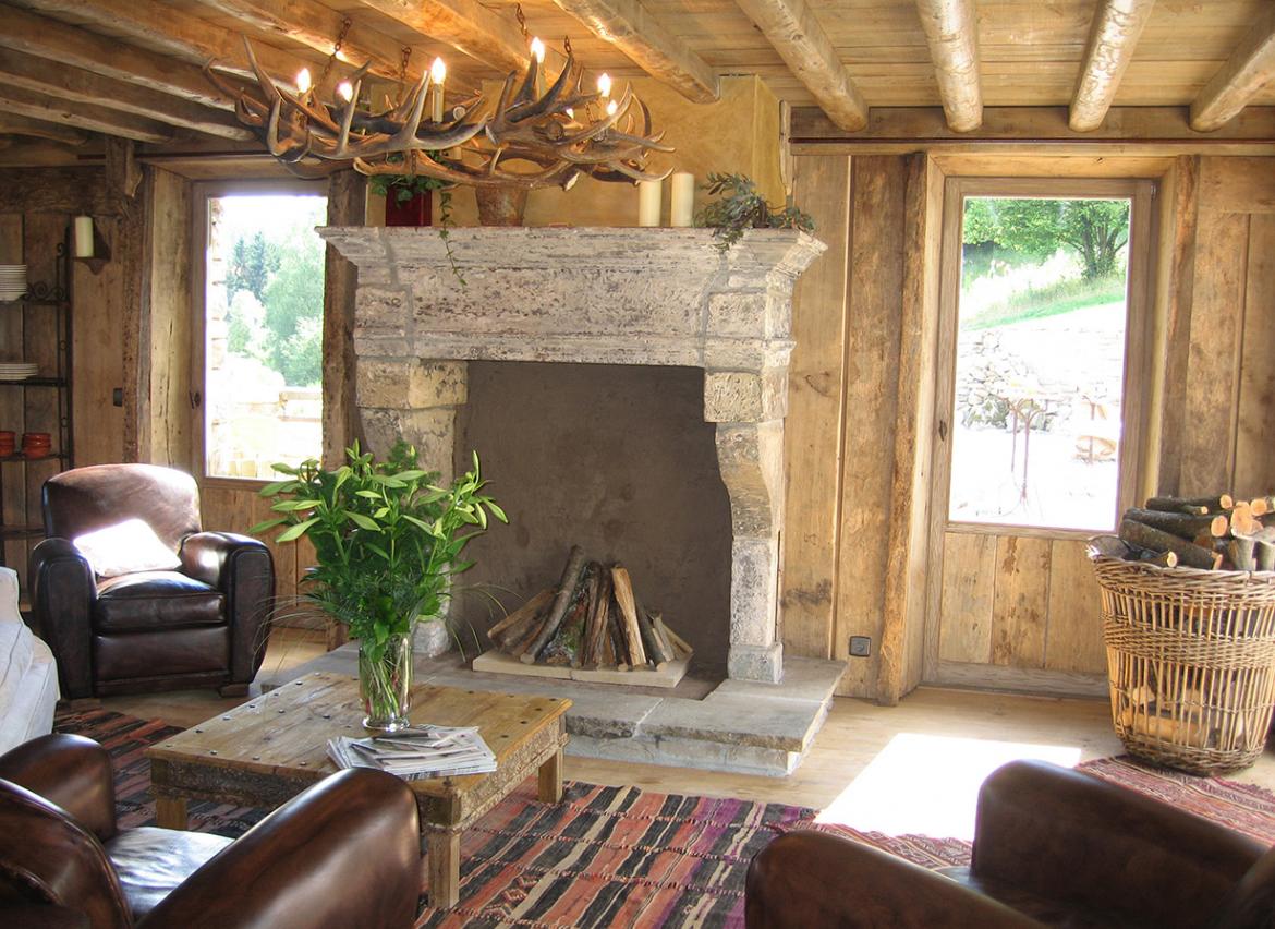 - Salon avec cheminée ouverte