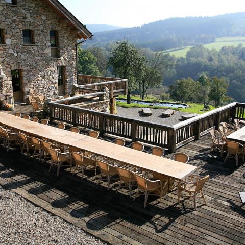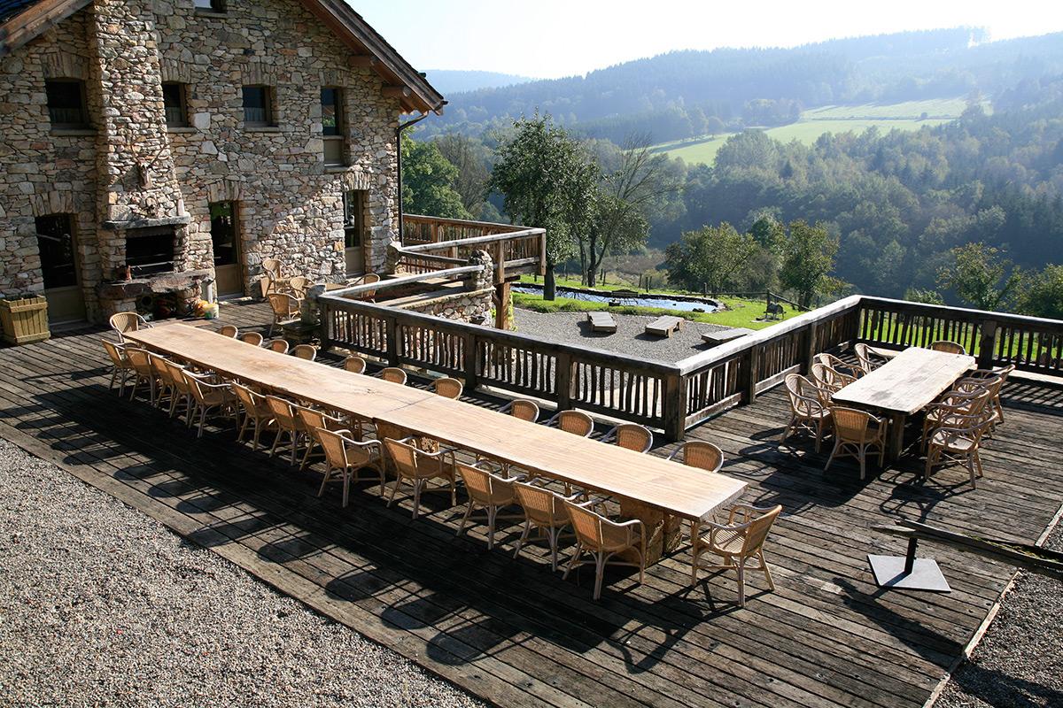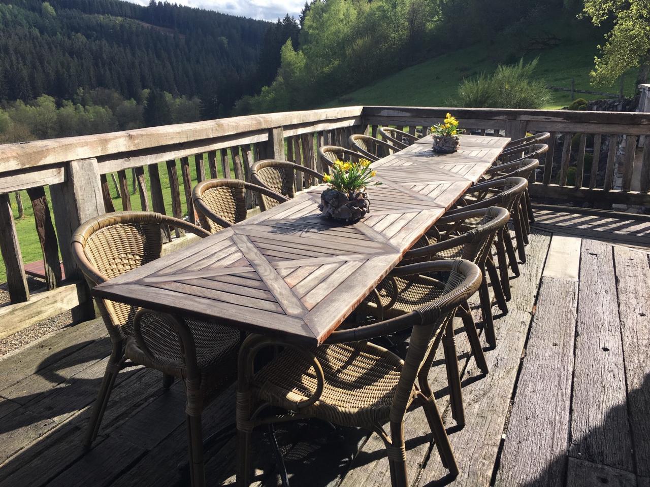 - Très grande terrasse avec plusieurs tables et chaises pouvant accueillir jusqu’à 50 personnes (possibilité d’installer un chapiteau)