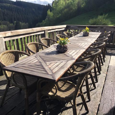 - Grand balcon avec tables et chaises pour 24 convives